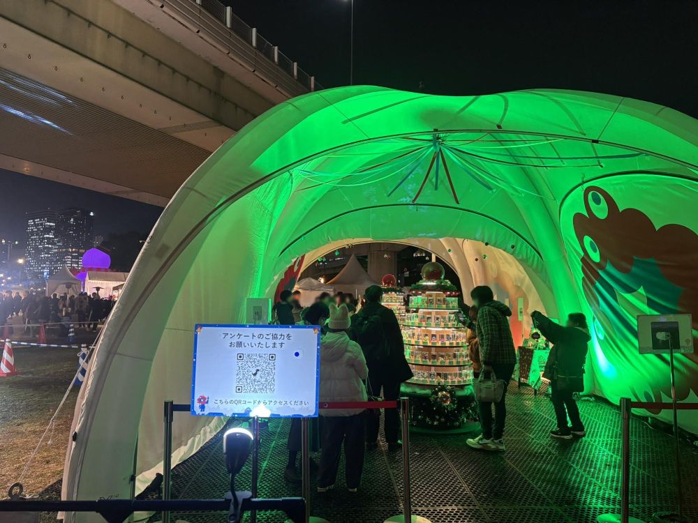 内容としては、各国のパビリオンスタッフが思いを込めたミャクミャクフィギアをオーナメントにしてクリスマスツリーとして展示しています。