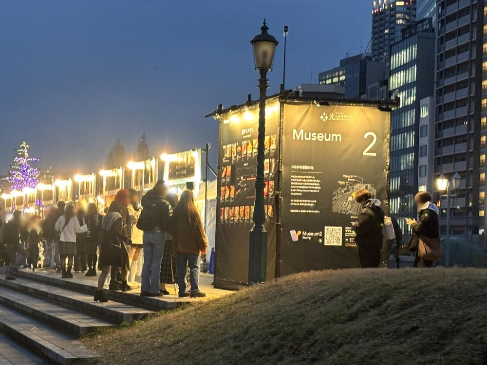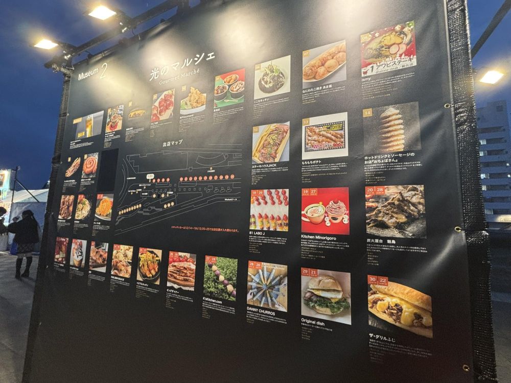 隣では光のマルシェが行われています。集めているデジタルスタンプがすべてたまったたら抽選で、光のマルシェお食事券(A賞500円、B賞200円)がいただけるチャンスです。