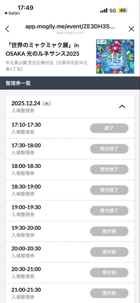 QRコードで読み取るとLINEのこちらのページが出てきて、入場整理券を手に入れられるようになっていました。