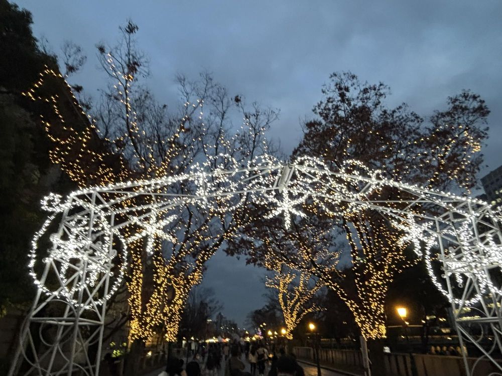 残念なことに今夜で終わりなのですが、昨夜のクリスマスイブの夕方にOSAKA光のルネッサンス2025の実際の様子を見てきました。今日は夕方まで雨模様なので、その後は曇りということなので人の混雑が緩和される可能性が高く、チャンスかもしれません。もう遅いかもですが、今年行けなかった人にどんな内容かご覧いただければとおもいます。また来年の参考を兼ねてご紹介します。
