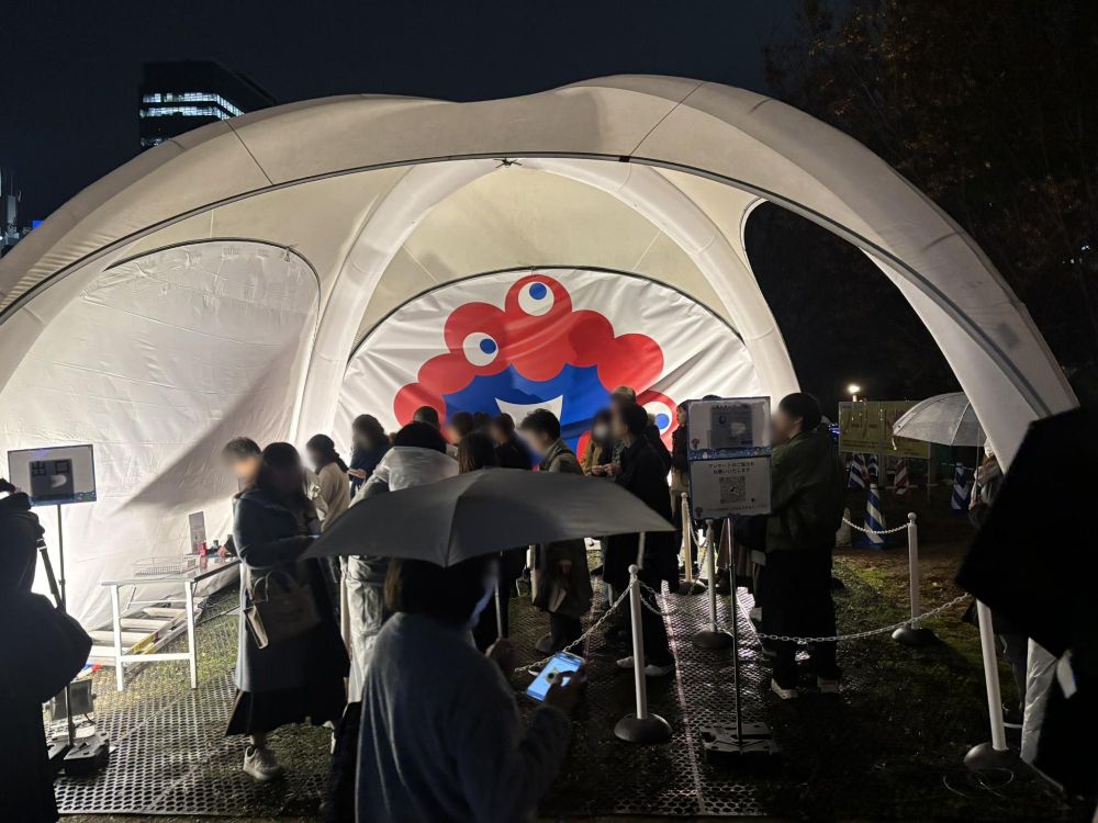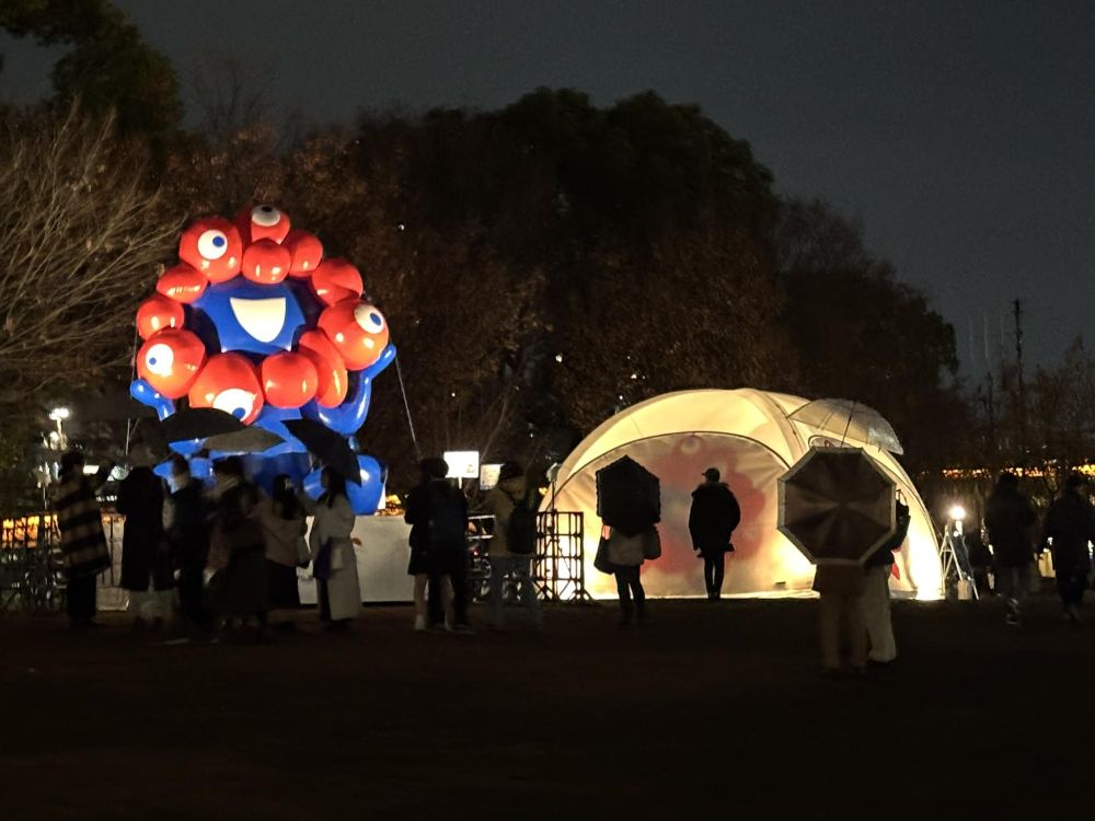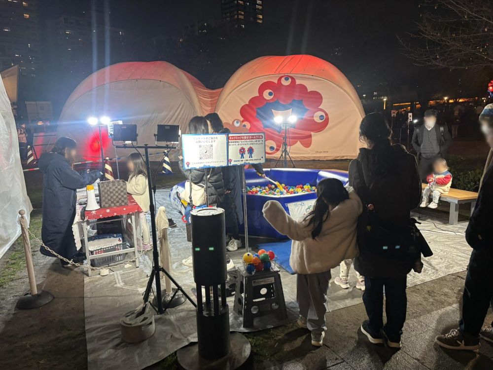 クリスマスハンドメイドマルシェのすぐ隣にこのようなものがありました。これはミャクミャクを探せ!ポールプールで、3歳児から小学生までを対象としたゲームコーナーです。