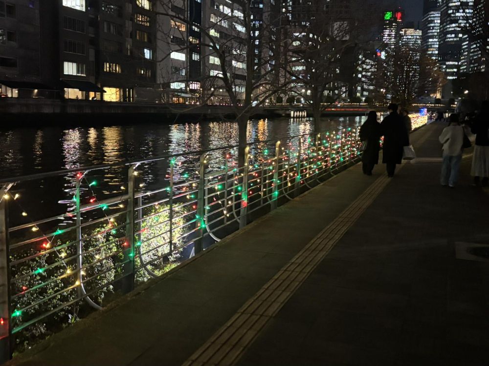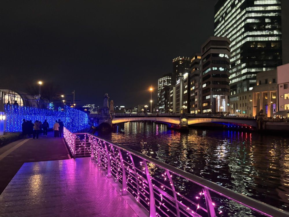 下まで降りてきました。土佐堀川沿いにもイルミが点灯してます。