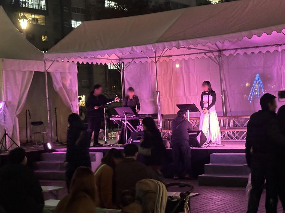さてこちらは、光のコンサートです。ミュージシャンやアーティストによる光と音に包まれながら行われるコンサート会場ということで、25日も17:30~21:00まで生演奏が行われました。