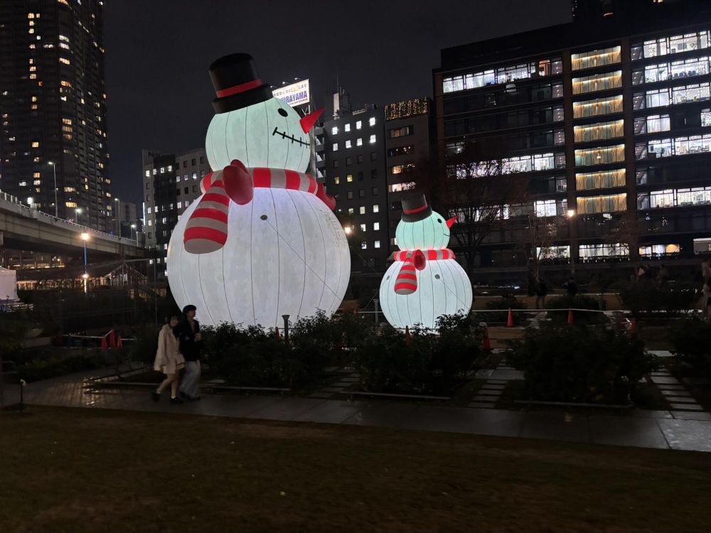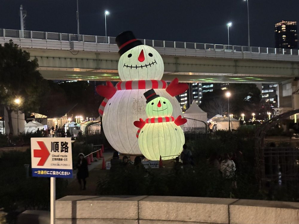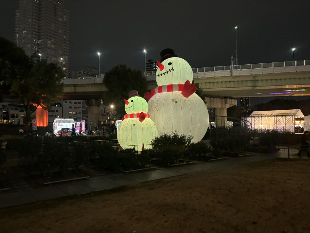 「UMEDA MEETS HEART 2025」連携 BIGスノーマンin中之島というそうで、BIGスノーマンとCO-BIGスノーマンの親子です。
