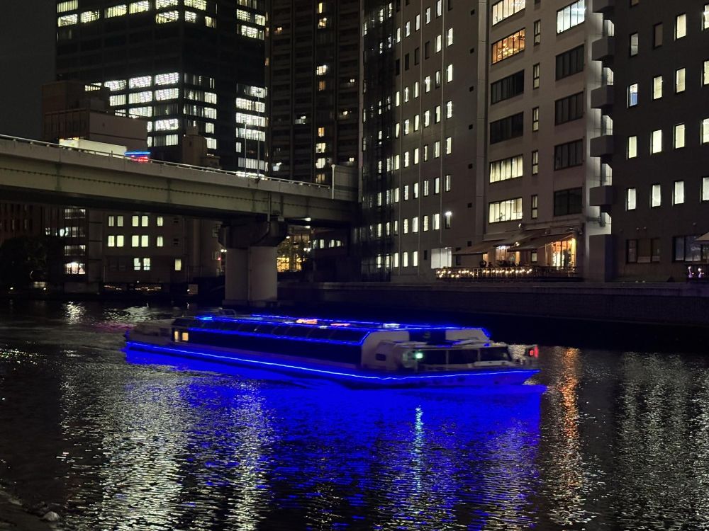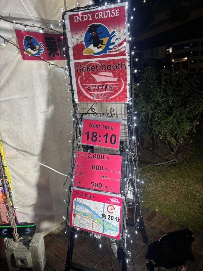 後で確認しましたが、インディクルーズの「中之島イルミネーションクルーズ2025」(外部リンク)でした。