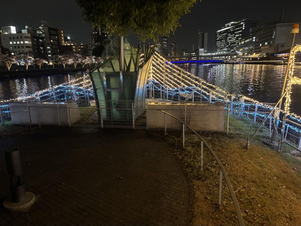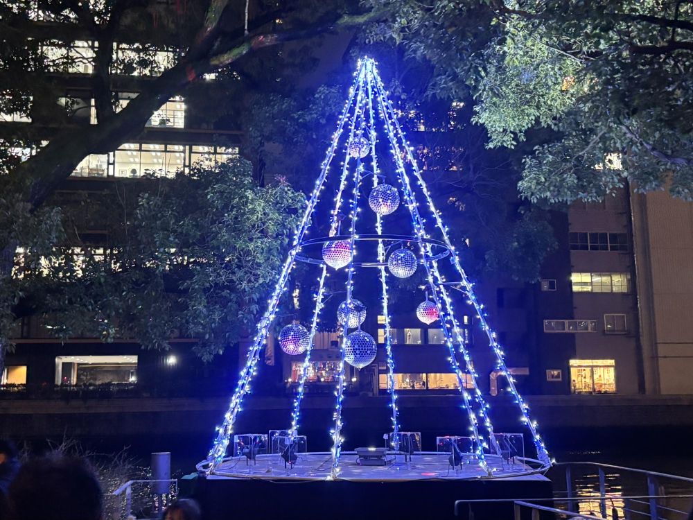 調べると2010年から行われている取り組みで「DREAMS COME TRUE WINTER FANTASIA(ドリームズ・カム・トゥルー ウィンターファンタジア)」とコラボレーションして、中之島の水辺拠点にシンボルツリー(通称ドリカムツリー)を植樹しました。現在7本あり、冬の時期にはイルミに彩られたツリーとなります。