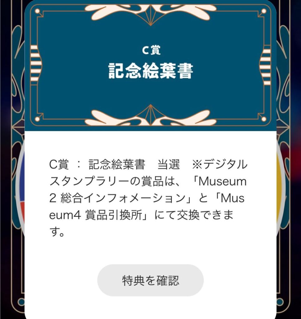 チャレンジしましたが、C賞の記念絵葉書が当たりました。A賞などは当たりませんでしたが、「ここで余計な運を使っている場合では無い」と、自分に言い聞かせ、
