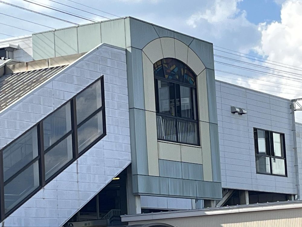 そして、寺ヶ池公園の最寄り駅である千代田駅にも、そんな教会建築を連想するようなものを見つけました。