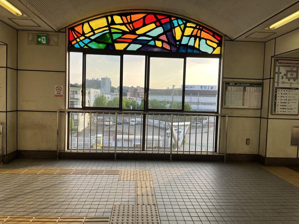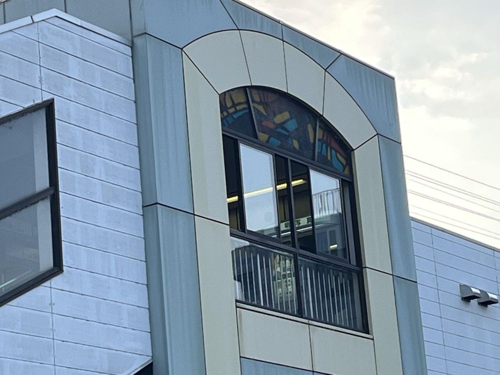 千代田駅は1938(昭和13)年に設置されたのち、1989(平成元)年に駅舎を橋上化しました。その時に設計した人がステンドグラスをつけようとした理由などは情報がなくわかりませんが、住宅地の駅ということで教会か西洋の洋館を意識したのかもしれませんね。