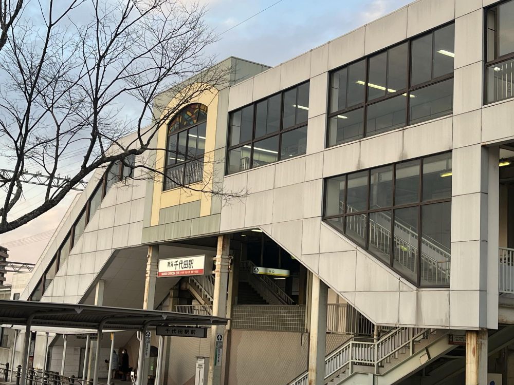 千代田駅は河内長野市内で唯一急行が止まらない駅(近鉄汐ノ宮駅にも急行は止まる)などといわれることがありますが、ホームの柱に古い線路を使ったり、ステンドグラスをつけたりなど、駅舎にこだわりが見られます。