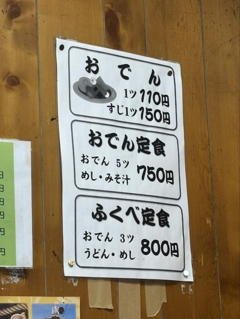 ふくべ定食を注文したので、「おでん3つ取ってください」と言ってくださいましたので、