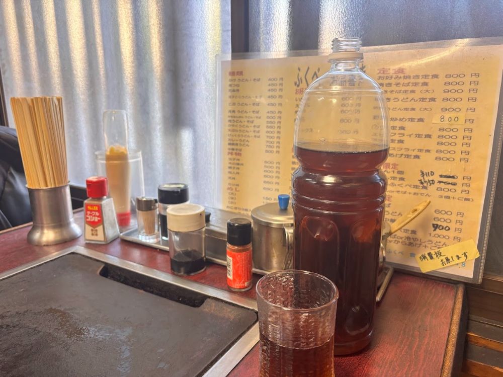 ちなみに、お好み焼きや焼きそばは、後ろでお店の方があらかじめ焼いてくださり、それをいただくスタイルです。