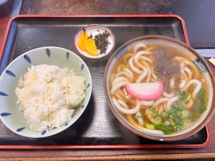ご飯ととうどんの組み合わせを見て、太子町が大阪に属していることを再認識できました。大阪では当たり前とされるご飯とうどんという組み合わせは、関東圏など他の地域では違和感があるとのこと。米と小麦料理という組み合わせは大阪を中心とする関西圏で発展した「粉もん文化」と、日本の主食「米」との融合した結果なのだそうです。ちなみにこのうどんの丼は見た目よりずっと量が入っています。