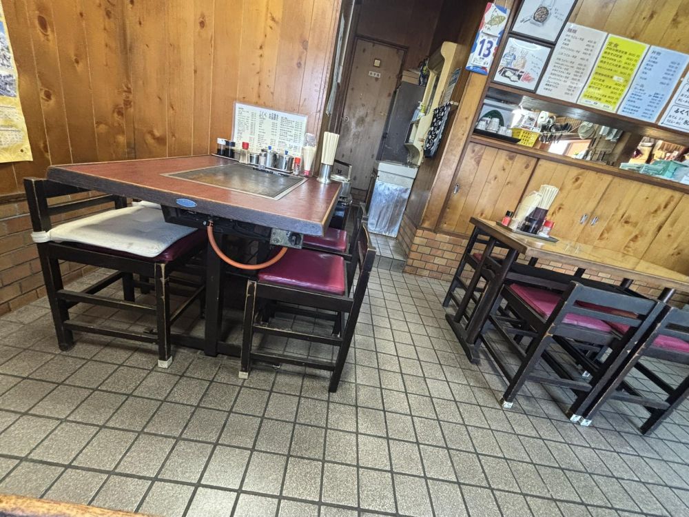 店内の様子です。ふくべ食堂さんは定食屋さんですが、同時にお好み焼き屋さんということもあり、テーブルに鉄板が備え付けられています。