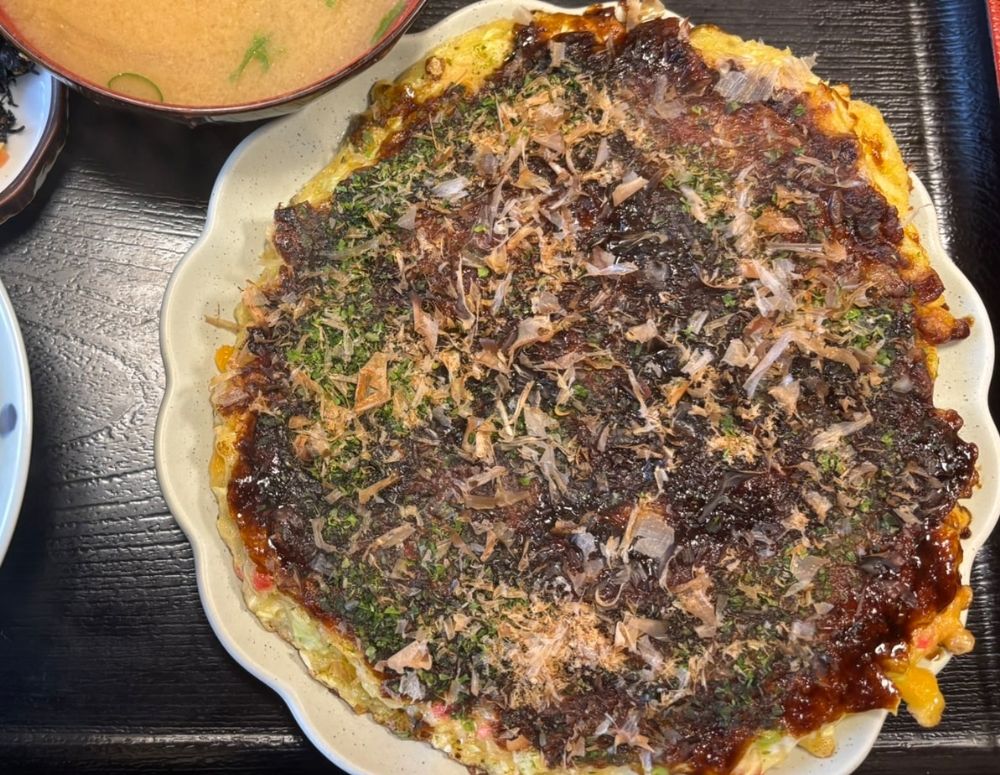 お好み焼き定食(800円)です。こちらも関西圏ならではの考えで、お好み焼きとご飯とのマッチング!
