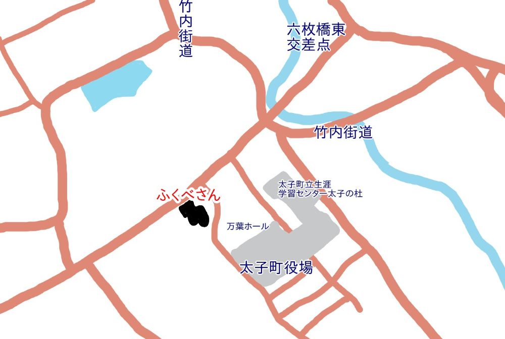 場所をおさらいすると、ふくべさんは太子町役場や万葉ホール、太子町立生涯学習センター太子の杜のすぐそばにあります。つまり太子町の中心部にあるお店だということがわかります。