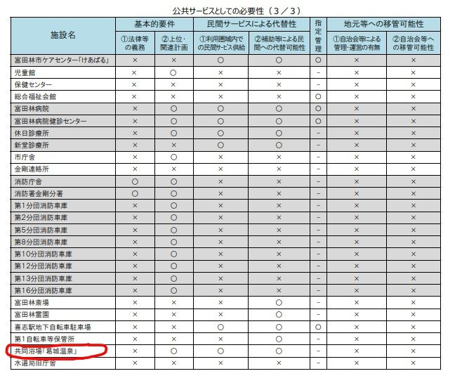 これはその資料の中にあった表ですが、下から2番目に葛城温泉があります。そして葛城温泉の今後については次のような記述がありました。引用します。