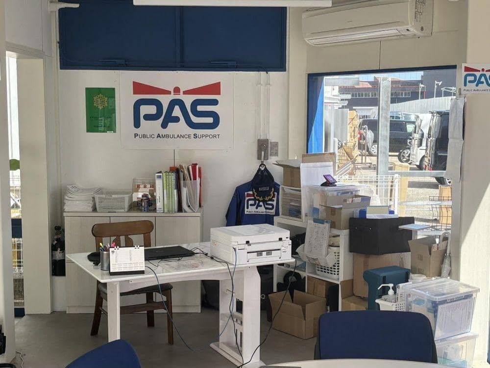 2021(令和3)年9月21日にNPOの認証が降りたので、10月1日に認定NPO法人「PAS」を設立しました。同じ月に民間救急車が手に入り、翌2022(令和4)年から事業をスタート。IKKENの社長さんは、PASさんの事務所の場所を提供するなど、角さんを後方からサポートします。