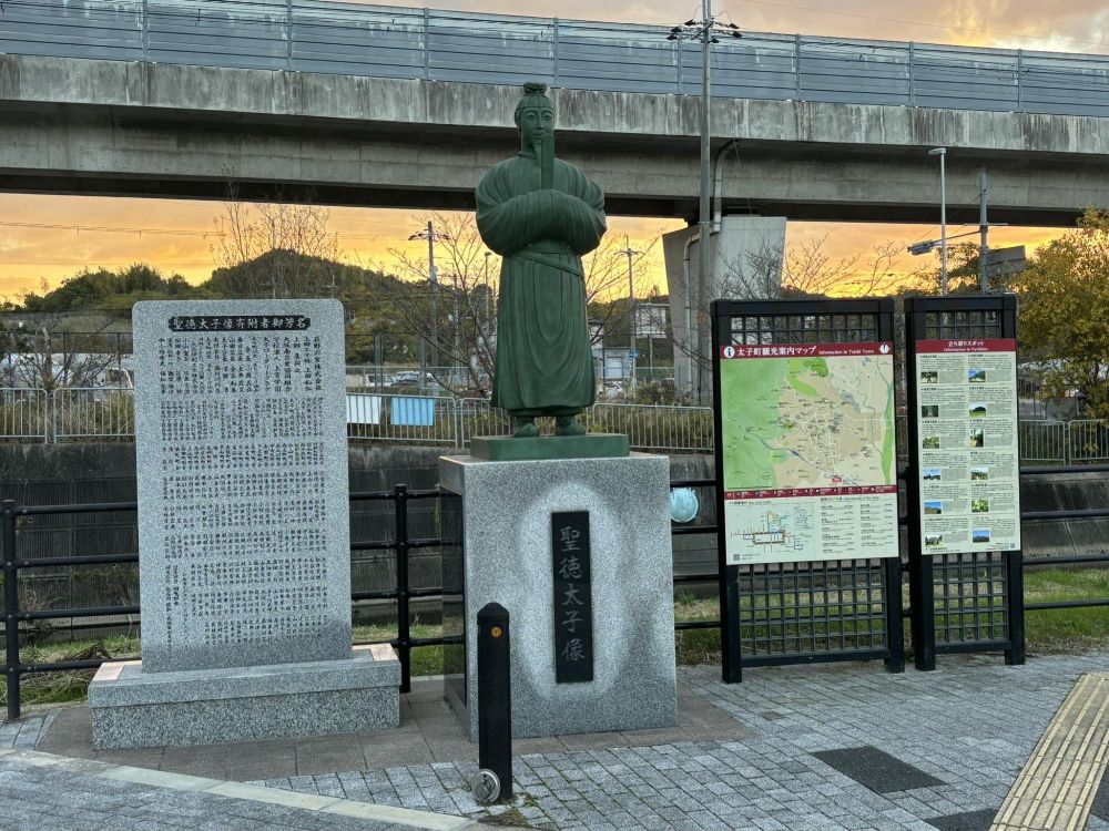 (近鉄喜志駅前には聖徳太子御廟の石碑がある。隣には小野妹子墓の石碑も)