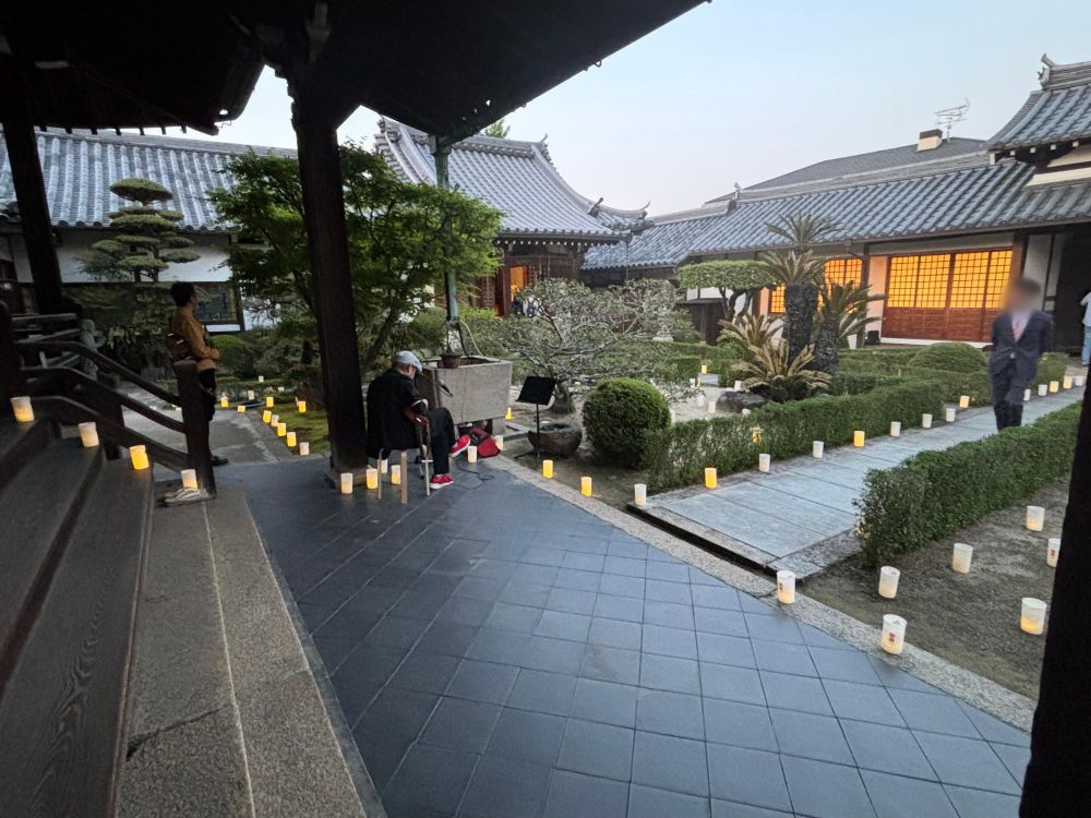 西方院では独自のイベントの他、太子町のイベントにも協力をしていて、私が知っているものでは第18回太子聖燈会の時にも西方院さんでマルシェが行われ、さらに本堂の前でライブが行われていました。