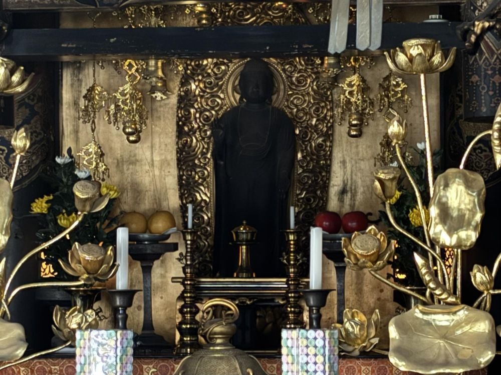 三尼公の建立した時の名前は法楽尼寺です。阿弥陀如来の西方極楽浄土を欣求(ごんぐ:喜んで道を願い求める)していたとされていることから、常行念仏最古の道場で念仏の根源の地でもあるそうです。