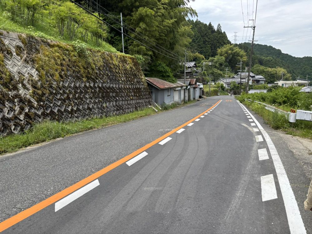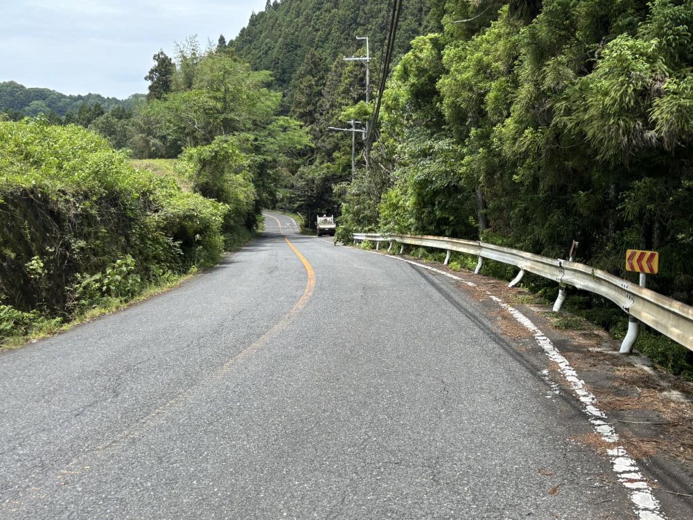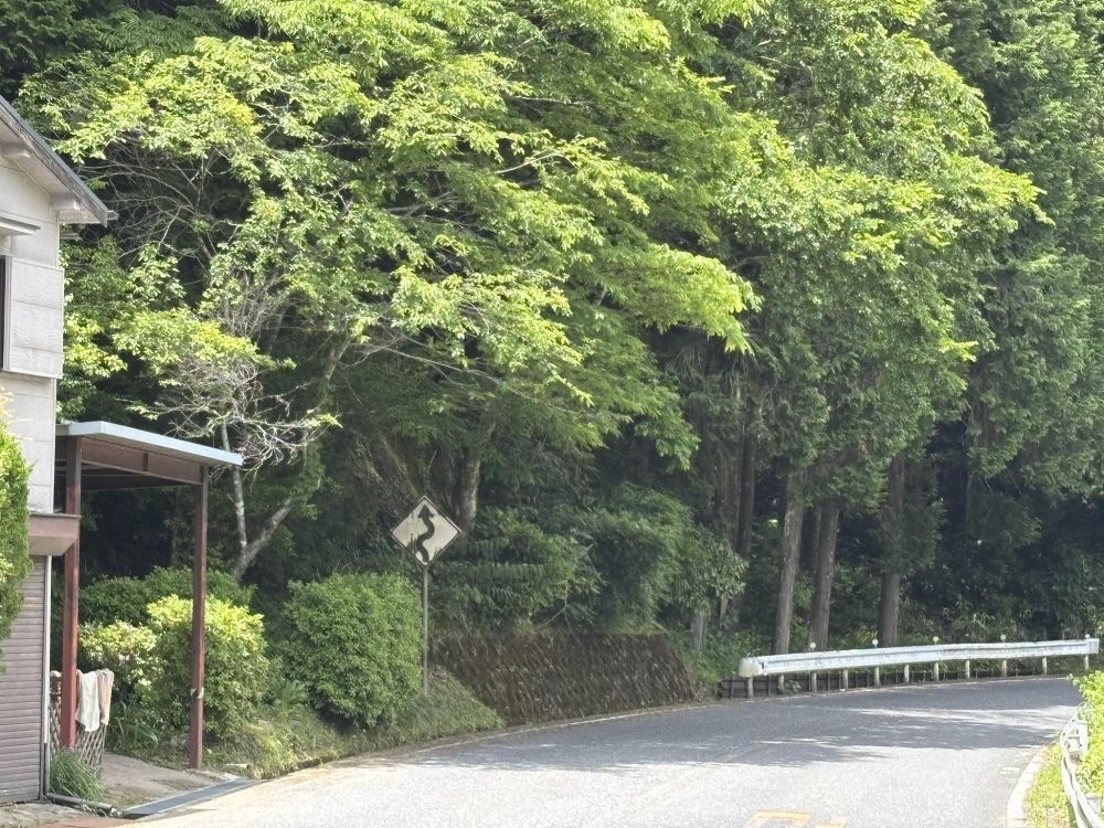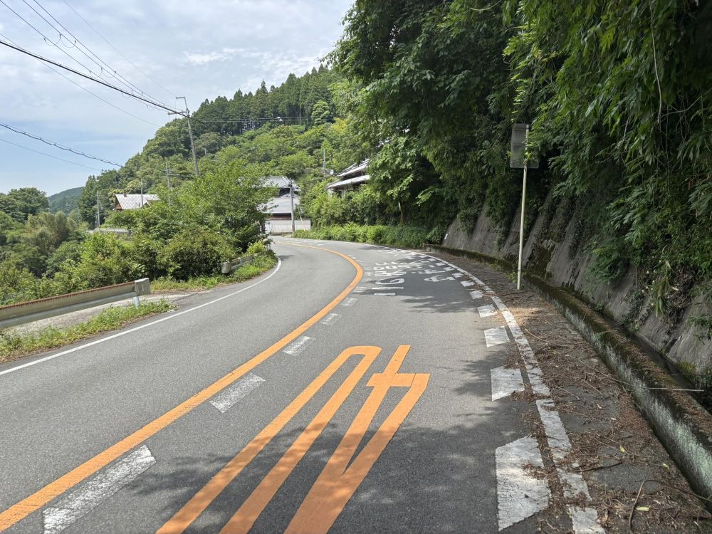 歩道がない道を引き続き歩きます。歩いた時は平日のお昼とあって車の往来がほとんどなかったのが幸いしました。
