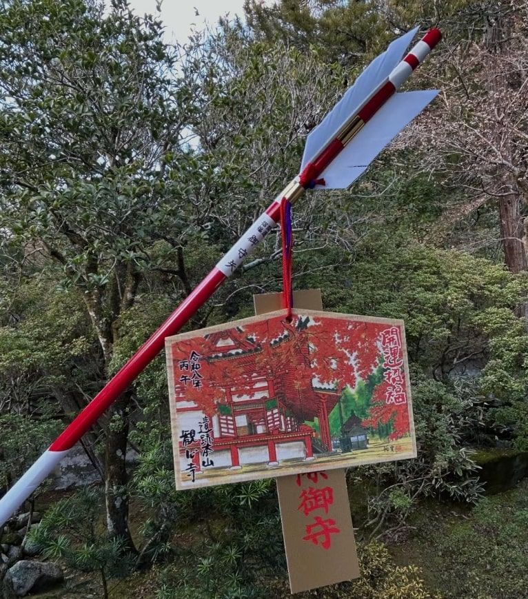 また、観心寺KU-RIさんからの情報によると、高野山画僧で文部科学大臣表彰やNHKなどの有名メディアに数多く出演している藤原裕寛氏と観心寺のコラボで誕生した破魔矢(はまや)も1月1日から観心寺境内で販売します。数量に限りがあり無くなり次第終了です。