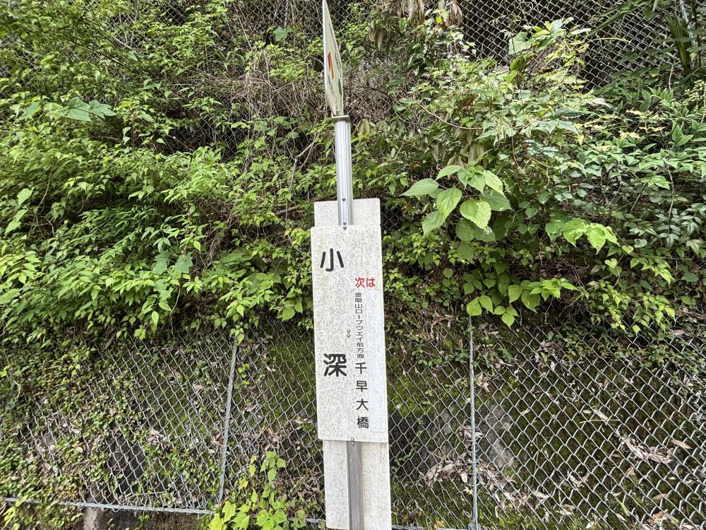 小深バス停で下車します。かつては石見川までバスがありましたが、今はすべて小深からは千早赤阪村の金剛登山口方面に行ってしまいます。