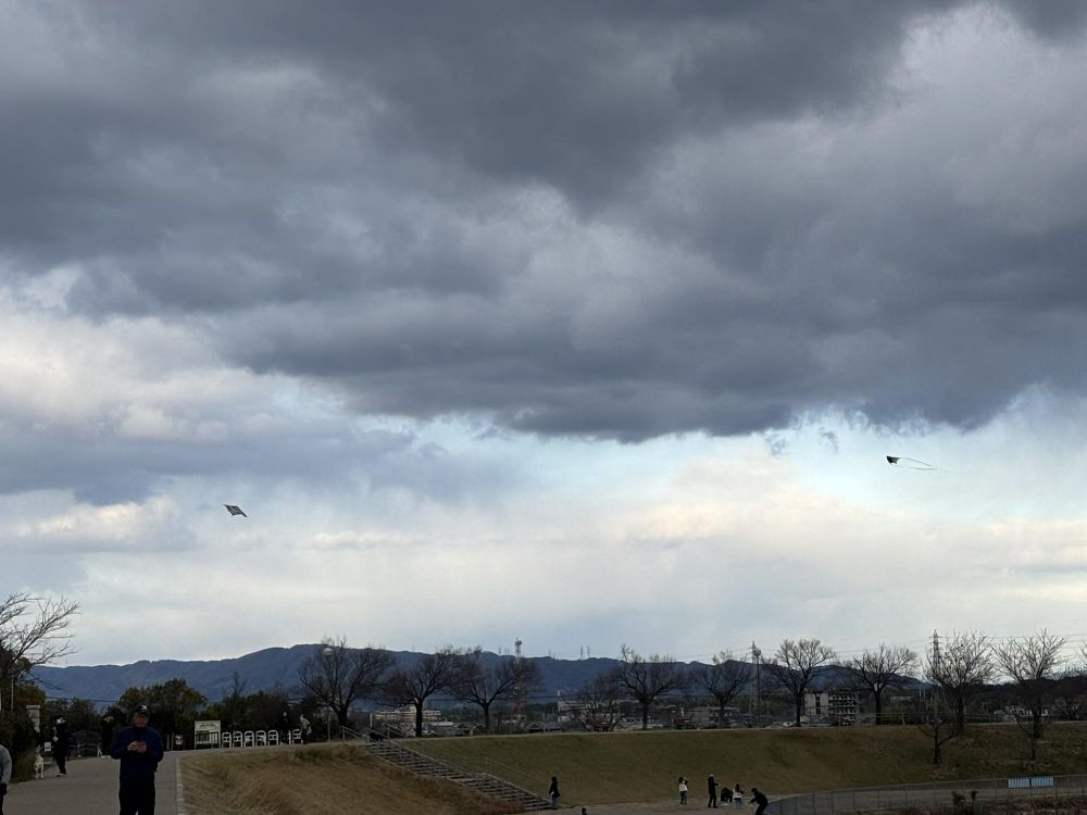 さて狭山池にはこの日もいろんな人がいましたが、よく見ると凧あげをしている人が居ました。