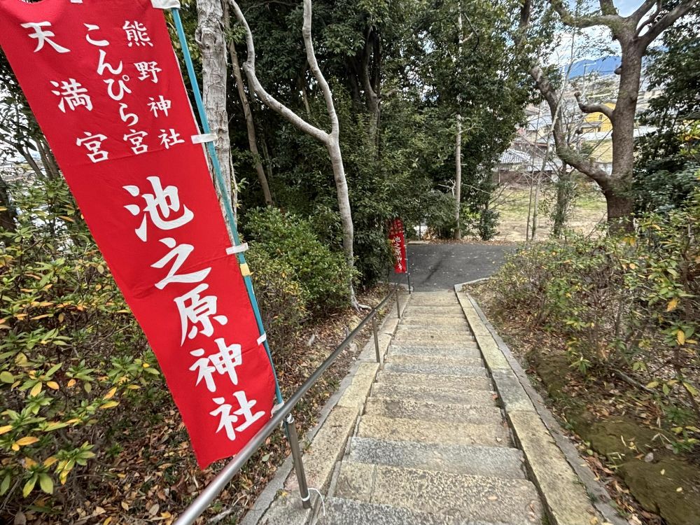 池之原神社は熊野神社の他、こんぴら(金刀比羅)宮と天満宮も祀っているとのこと。