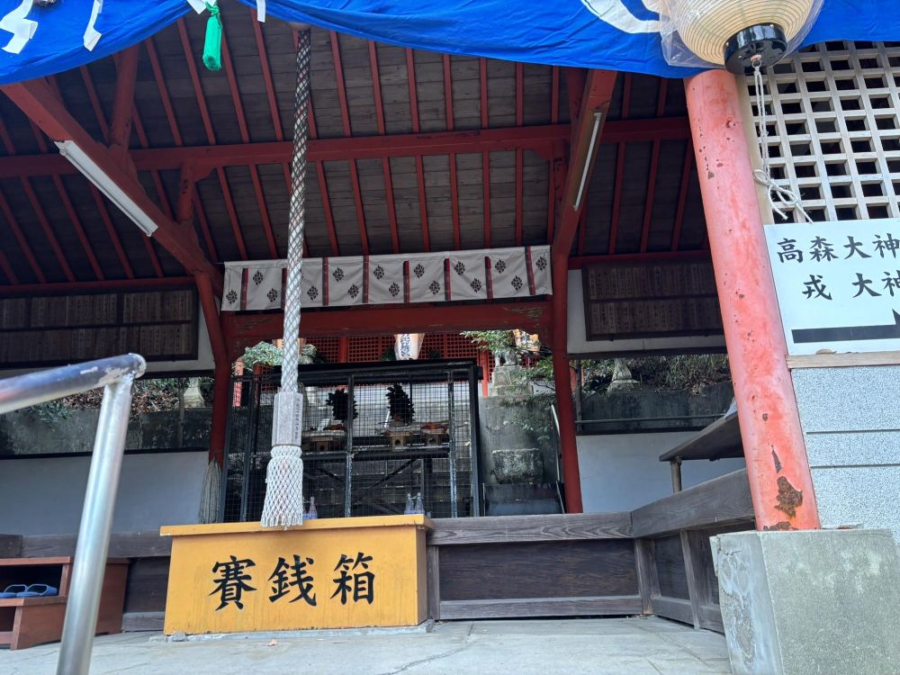 高森大神と戎(えびす)大神です。高森大神を調べると、大国主命の子、味須岐高彦根命(あぢみすきたかひこねのみこと)が出てきます。農耕神で稲作を日本に広めた神様とのこと。