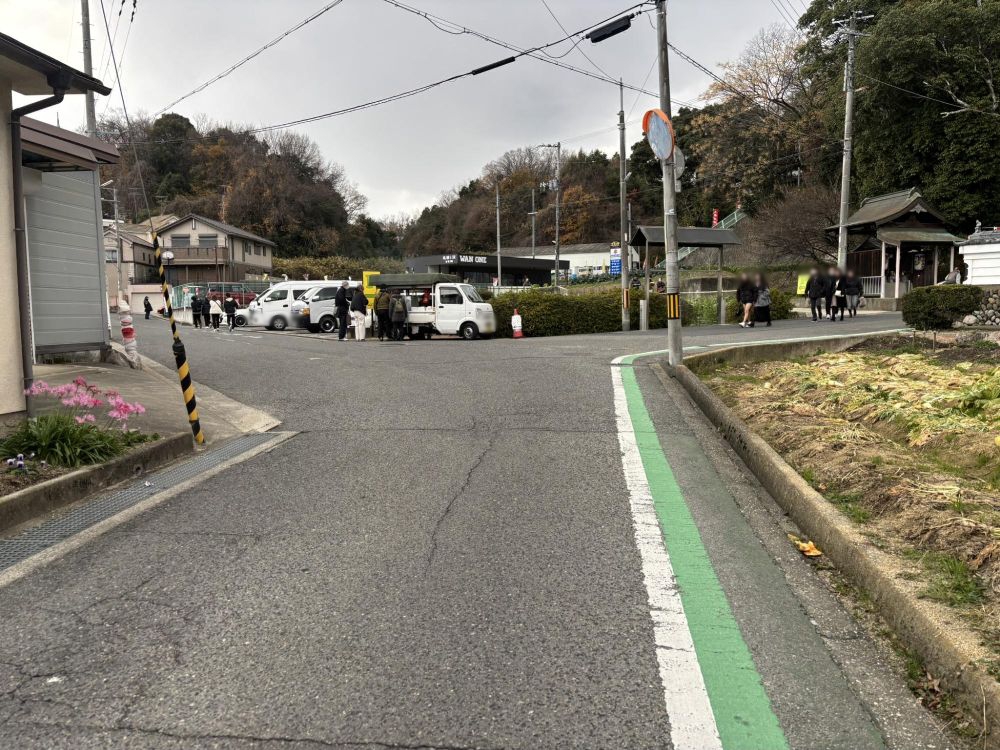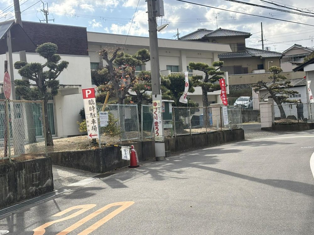 狭山神社から三都神社へは道を西方向に歩いていきます。およそ30分くらいで神社の手前の臨時駐車場のところに到着しました。