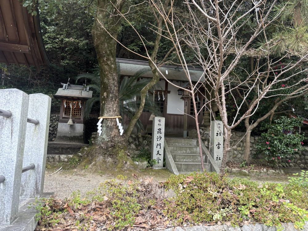 その他にも境内社がいくつか鎮座しています。その中にはかつての金蔵寺が所蔵したと思われ、1983(昭和58)年に文化財調査の際にみつかり、鎌倉時代末期の作と判明した毘沙門天像を祀っている毘沙門天堂があります。