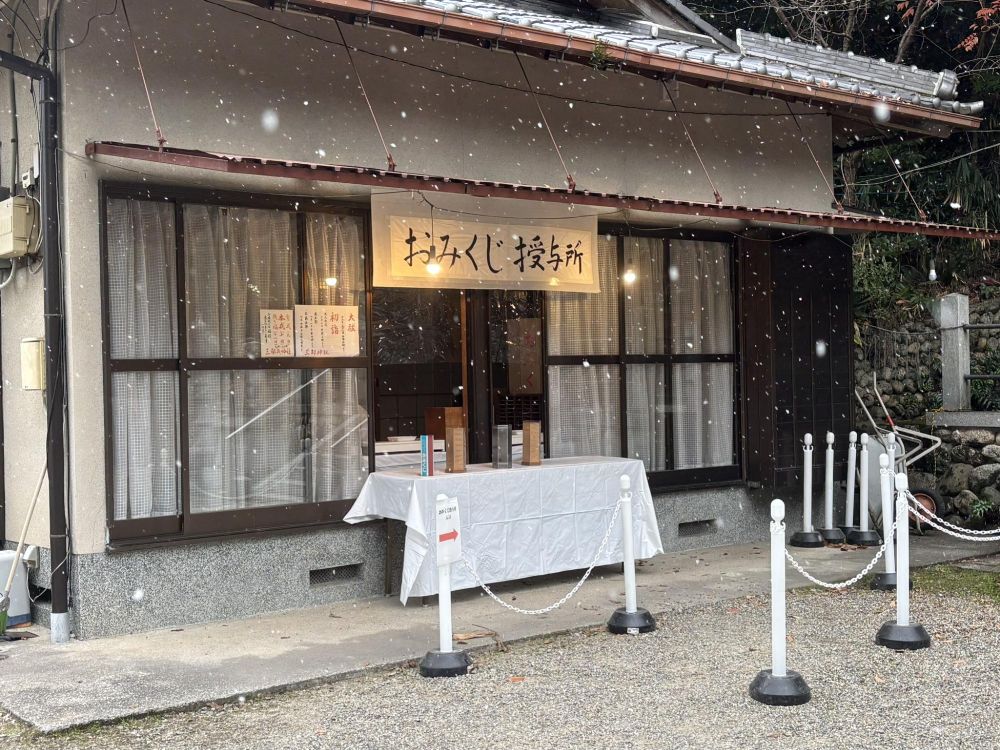 おみくじ授与所ですが、この時、ちょうど雪が降ってきました。