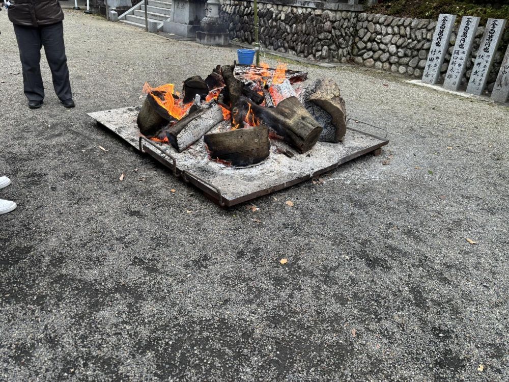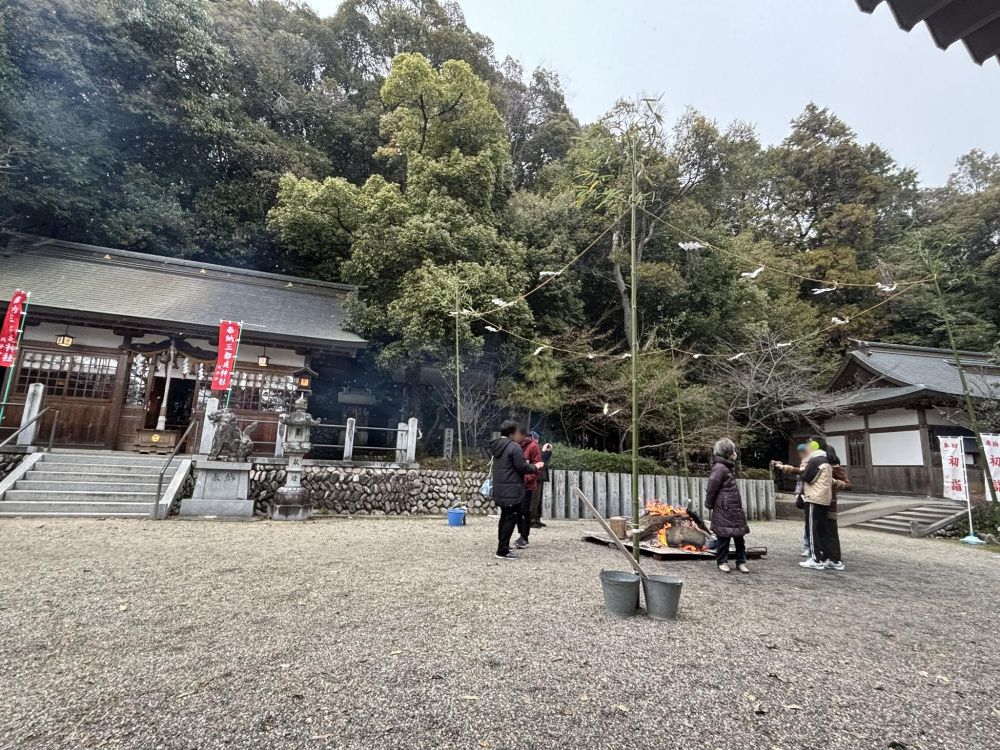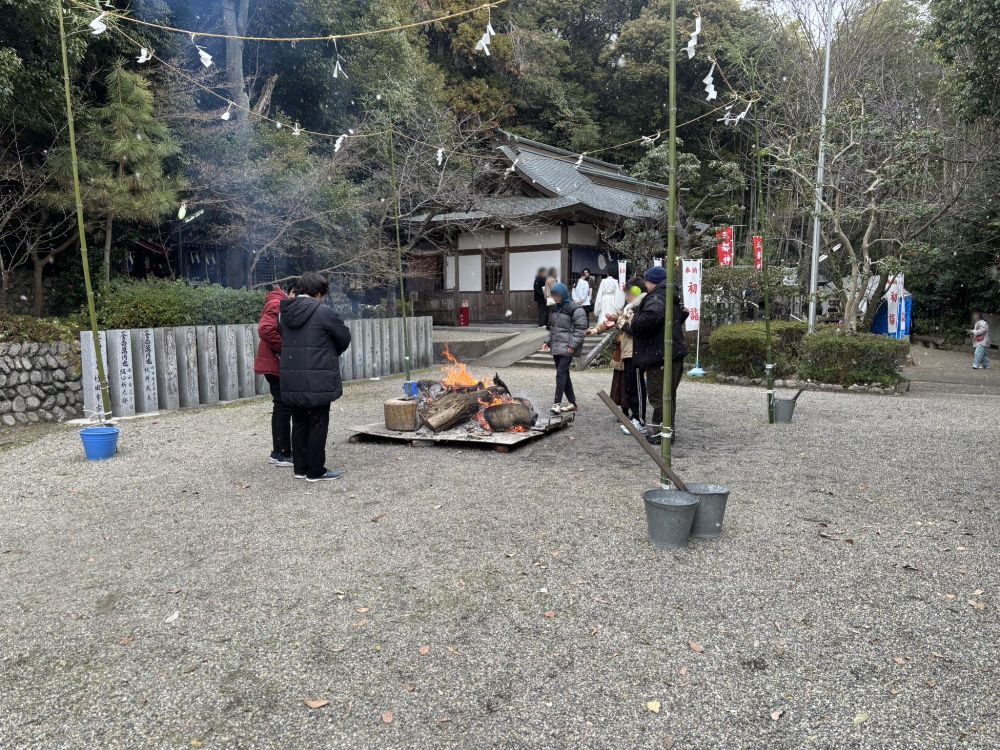 とても寒い日でしたが、初詣の神社境内にはたき火があるところが多く、三都神社にもありましたので体が温まりました。