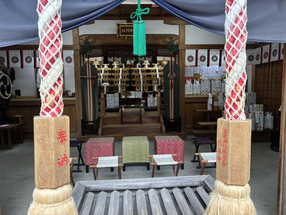 三都神社の祭神は伊邪那岐命(いざなぎのみこと)、伊邪那美命(いざなみのみこと)、素盞鳴尊(すさのおのみこと)の3柱です。これは熊野三所権現(熊野本宮大社で祀られる家津美御子<けつみみこ:すさのお>、熊野速玉大社で祀られる速玉<はやたま:いざなぎ>、熊野那智大社で祀られる牟須美<ふすみ:いざなみ>)と一致しています。
