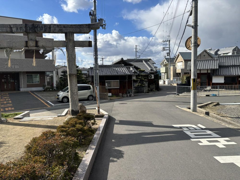 臨時駐車場からさらに西方向に歩けば三都神社の入口です。