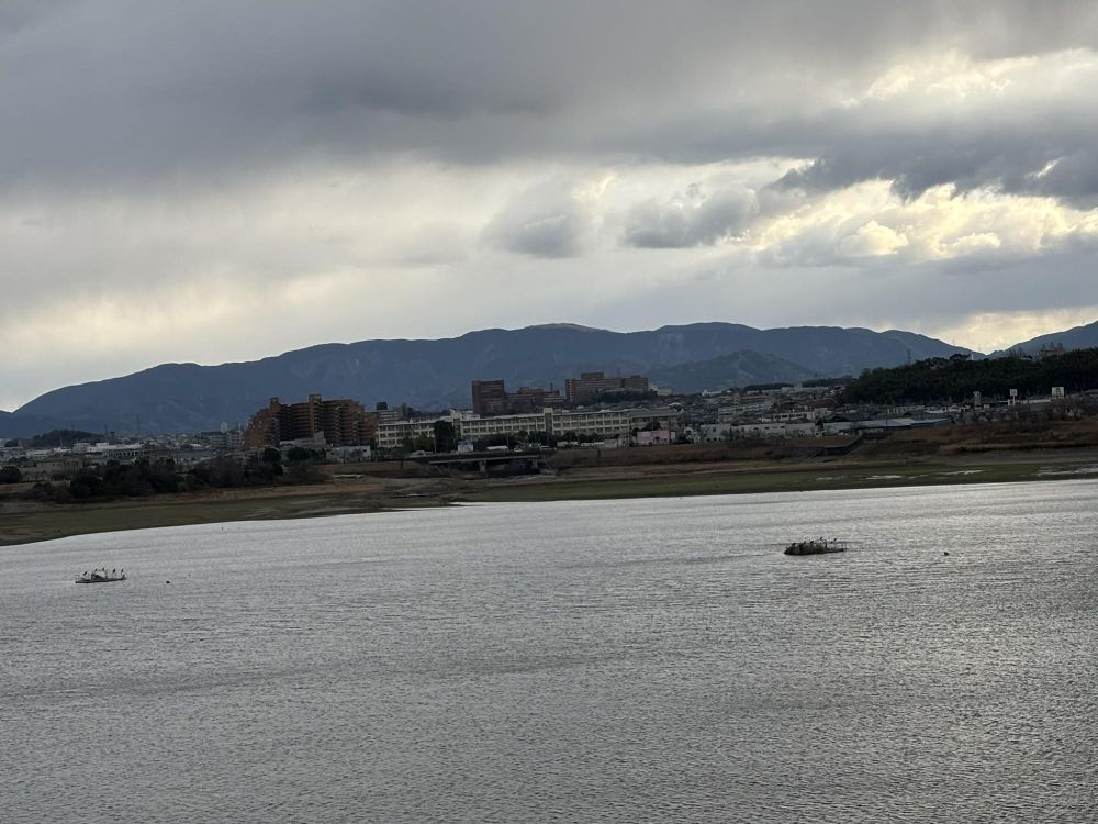 狭山池の北堤から南のほうをながめると、ちょうど岩湧山が見えました。