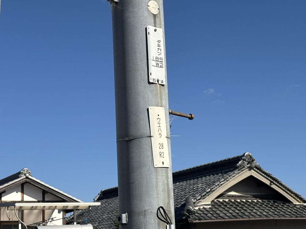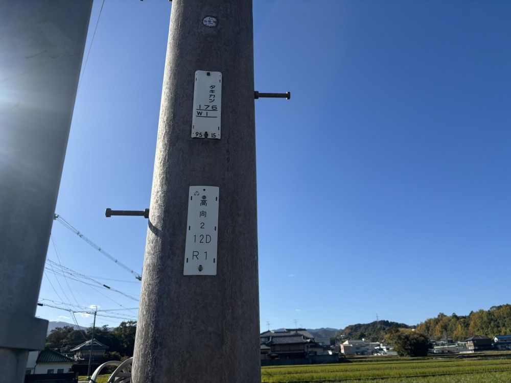 電柱の電気網は幹線の電柱以外にも支線などいろいろとあるらしく、タキカンとは別に高向と表示している看板もついています。