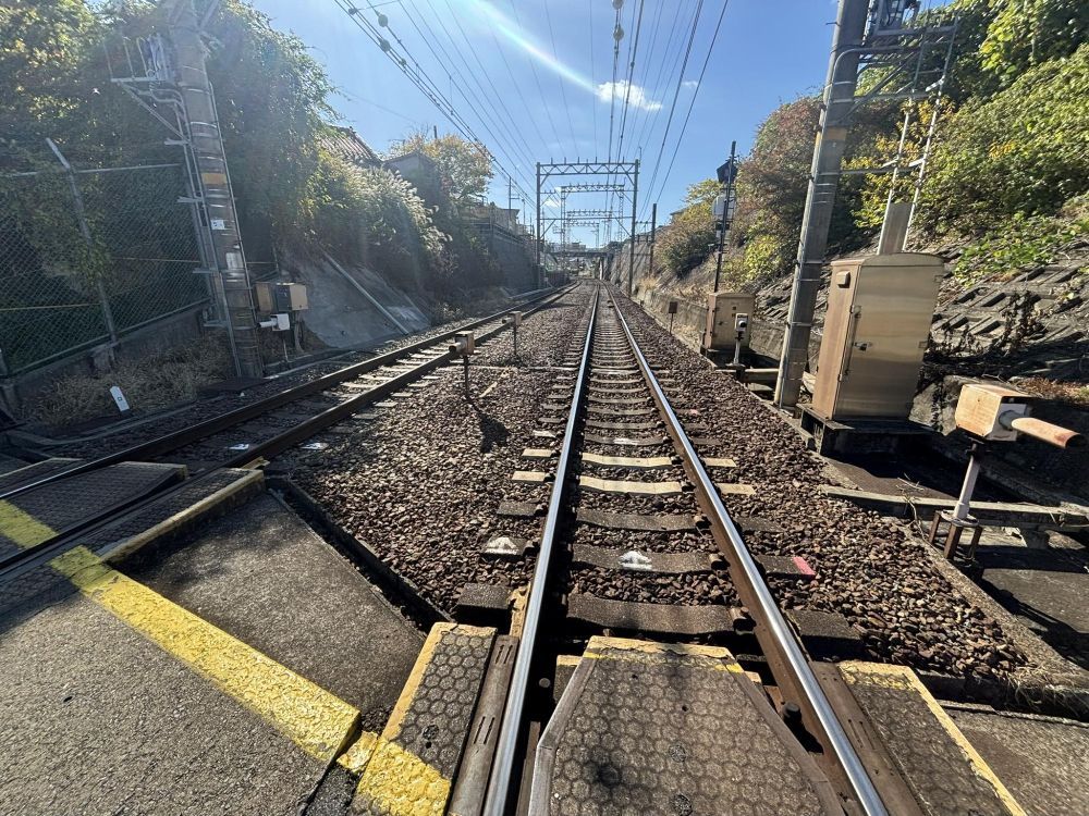 踏み切りを越えると電柱がありますが、これはタキカンではありません。