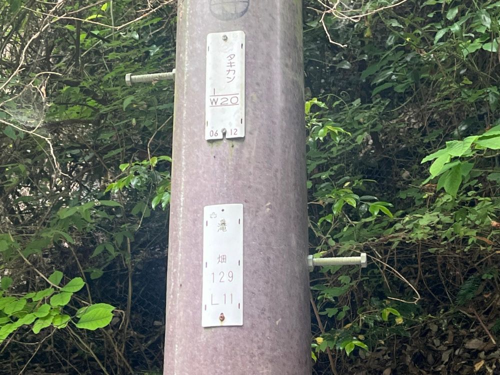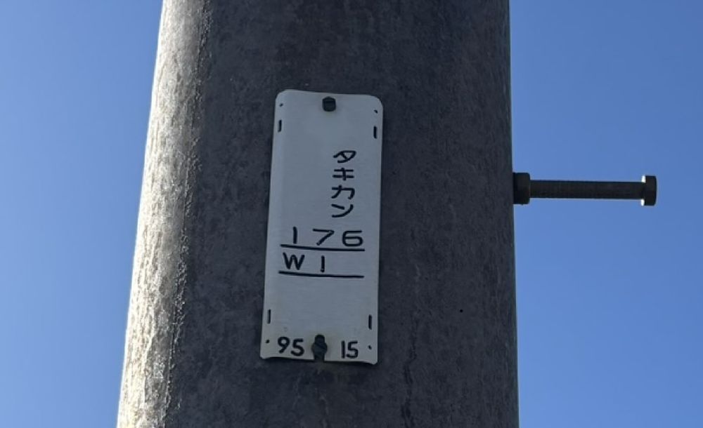 ちょうど176の番号が振られていますが、滝畑の発電所から176番目の電信柱になるそうです。