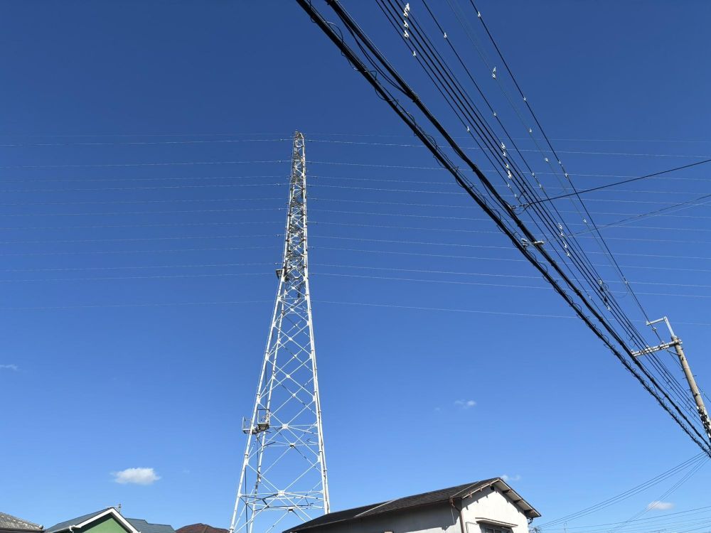 今回は「タキカン」という電柱沿いに歩いていますが、見えてきたのはそれよりもはるかに高電圧の電気を供給している高圧線と、支える高圧鉄塔です。