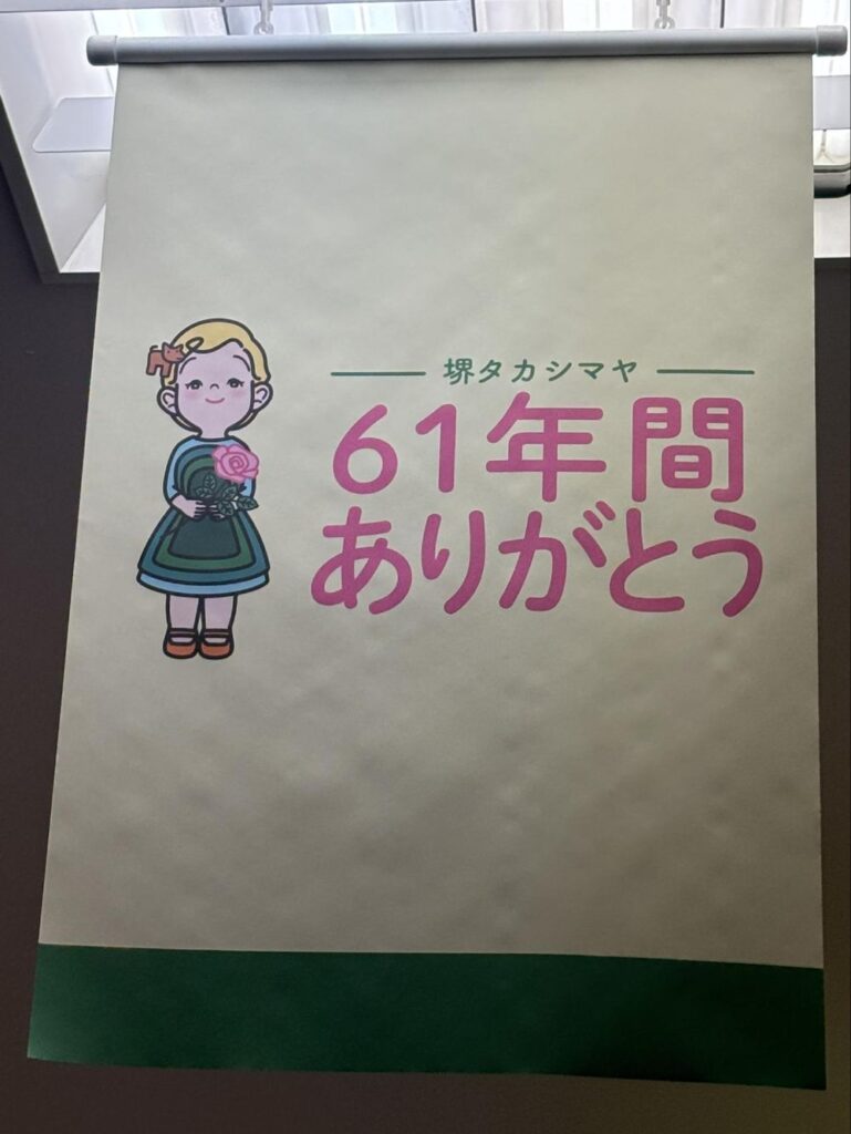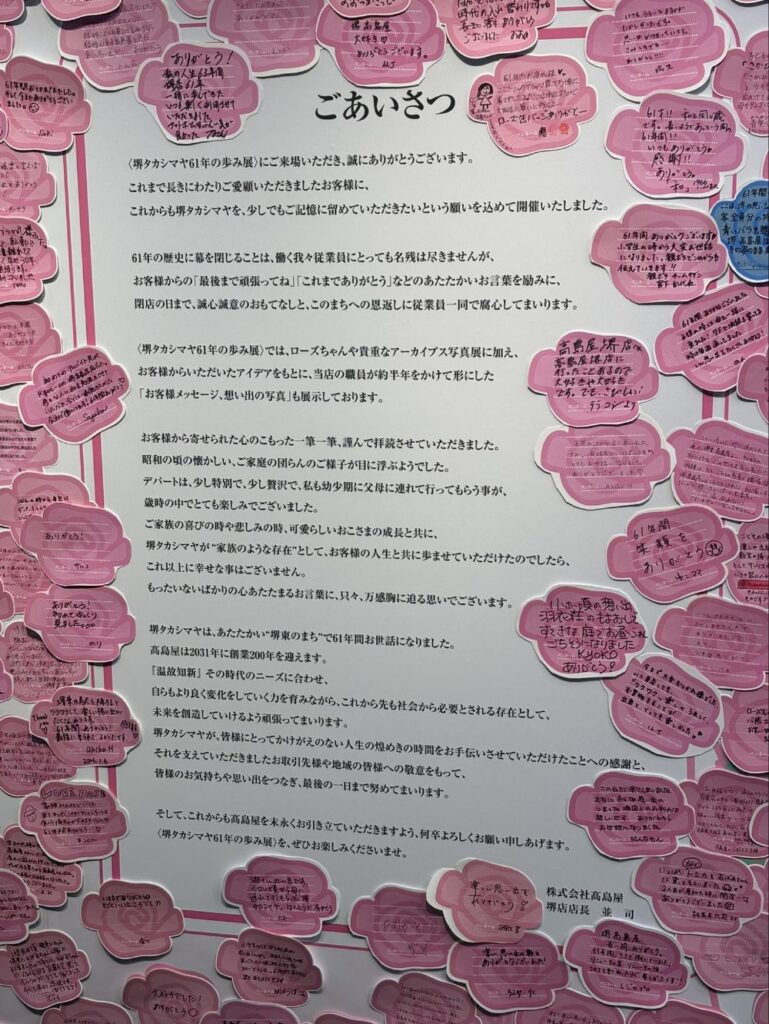 堺タカシマヤは無くなりますが、61年の間利用した多くのお客さんに堺タカシマヤの記憶をととどめてほしいという願いで最終日まで開催したとのこと。