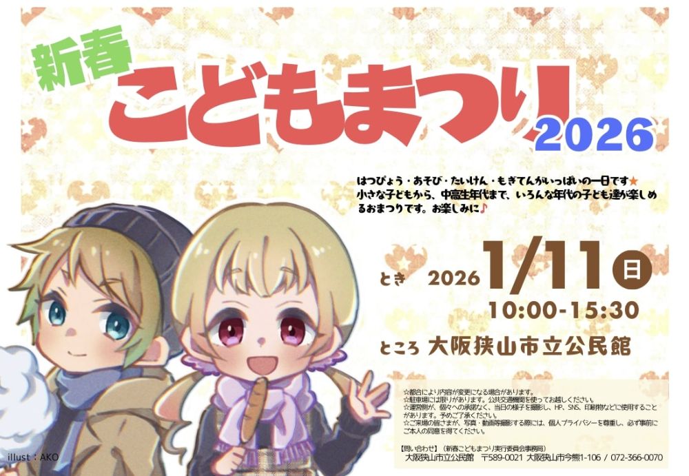 【大阪狭山市】1月11日に市立公民館で新春こどもまつり2026が行われます。(オリジナル)