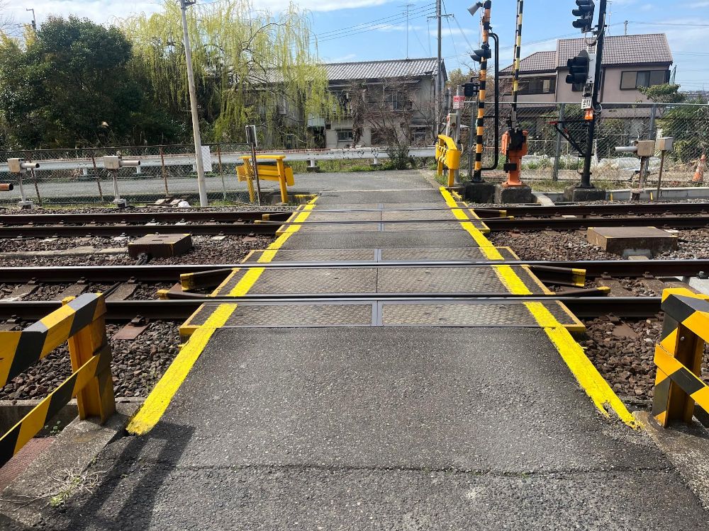 ということで、さっそく現地に行ってみました。これは南海滝谷駅近くにある踏切です。