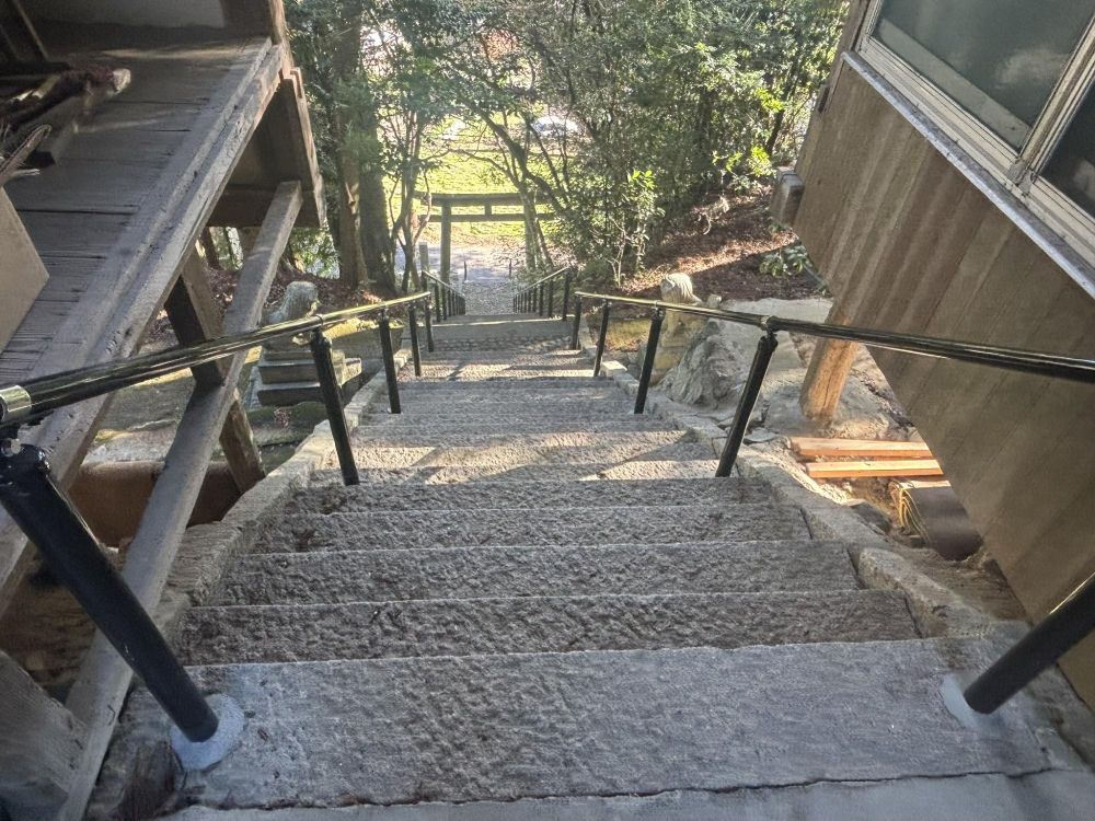 そして正面の階段についた手すりです。以前手すりがなかったときはちょっと怖かったのですが、手すりがついてから正面の階段から参拝しやすくなりました。