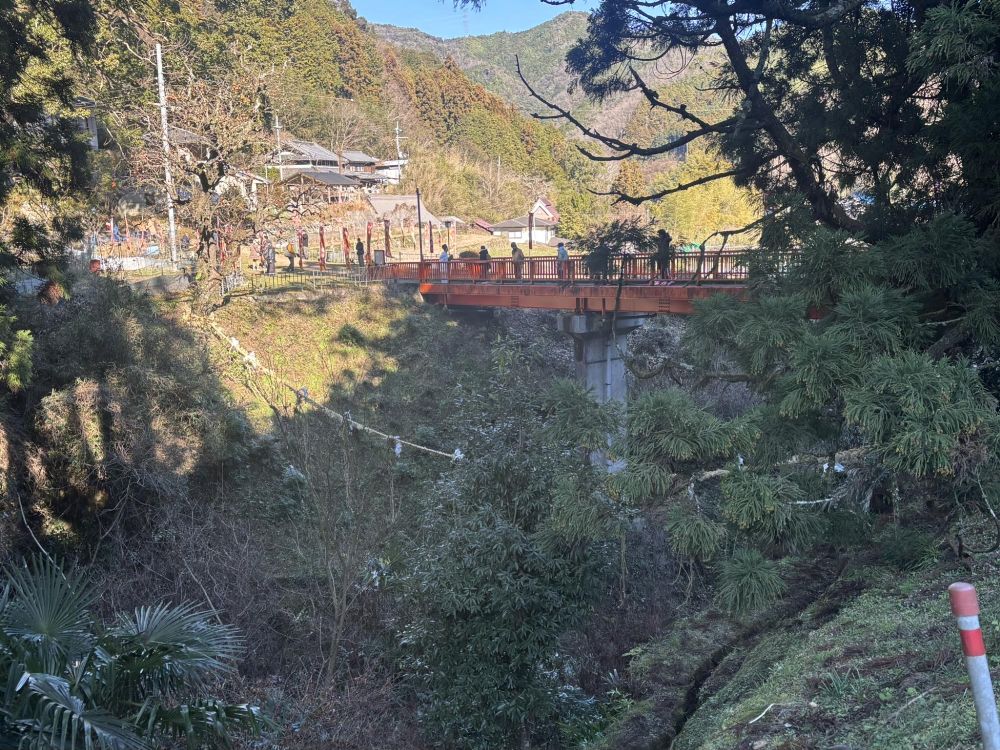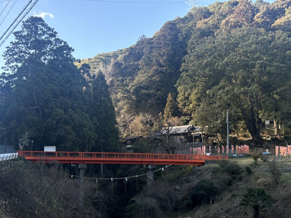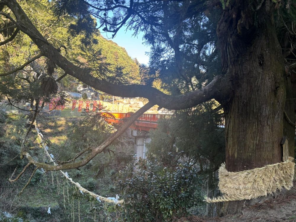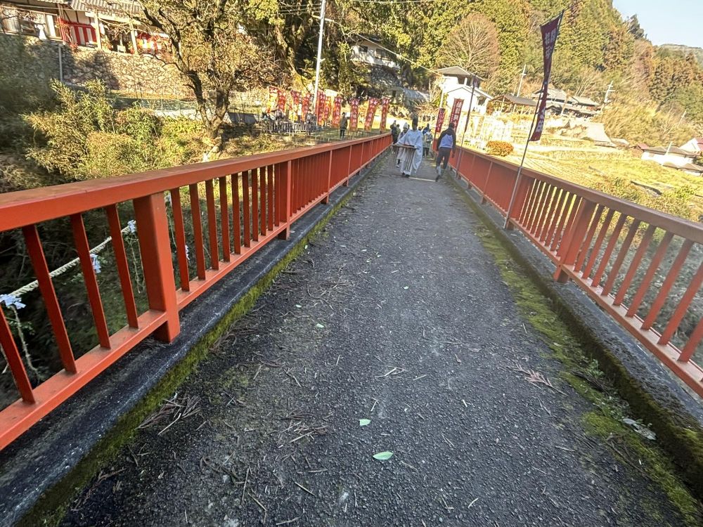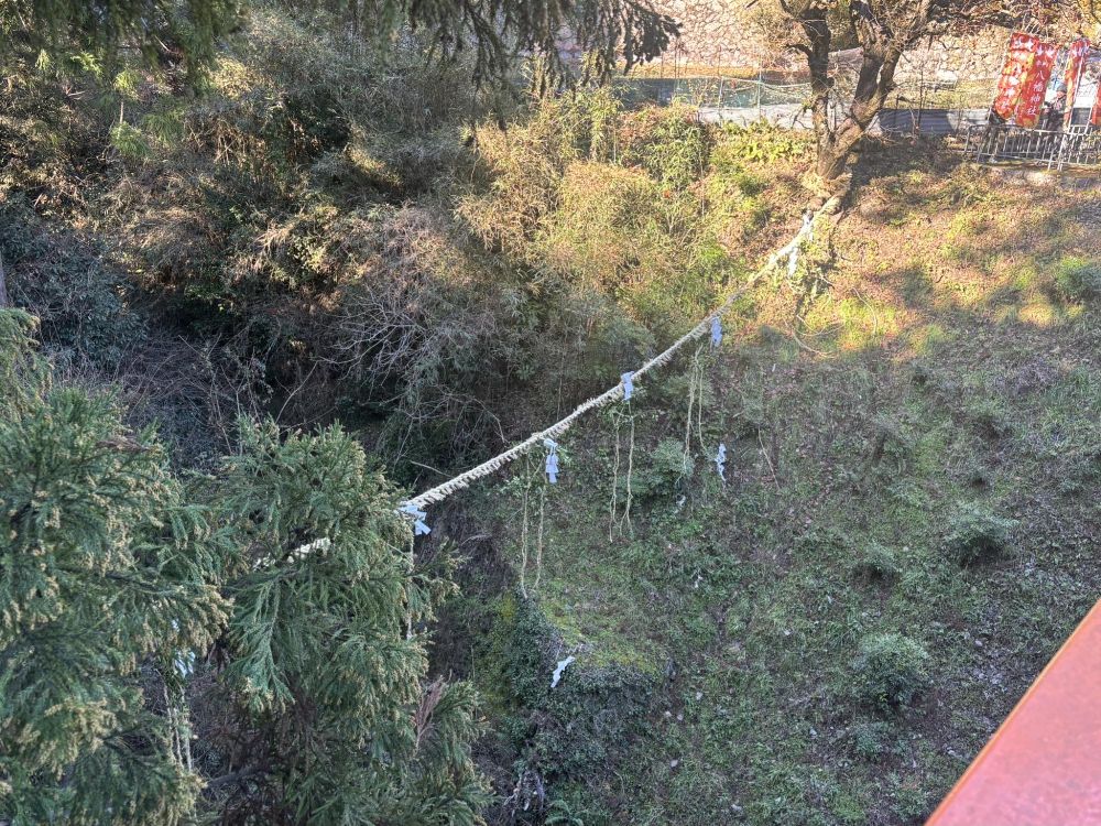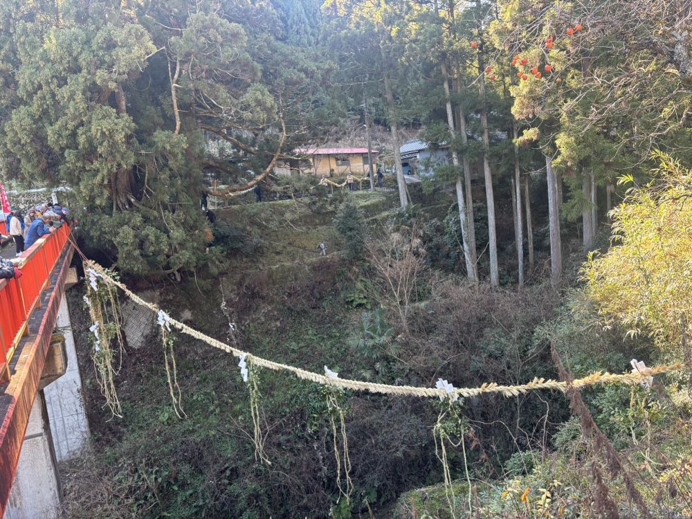 このように縄が橋から離れていきます。宮司さんの話によれば勧請縄かけの縄は神様の通り道という意味のほか、天見と流谷との間の結界のような意味合いもあるそうです。