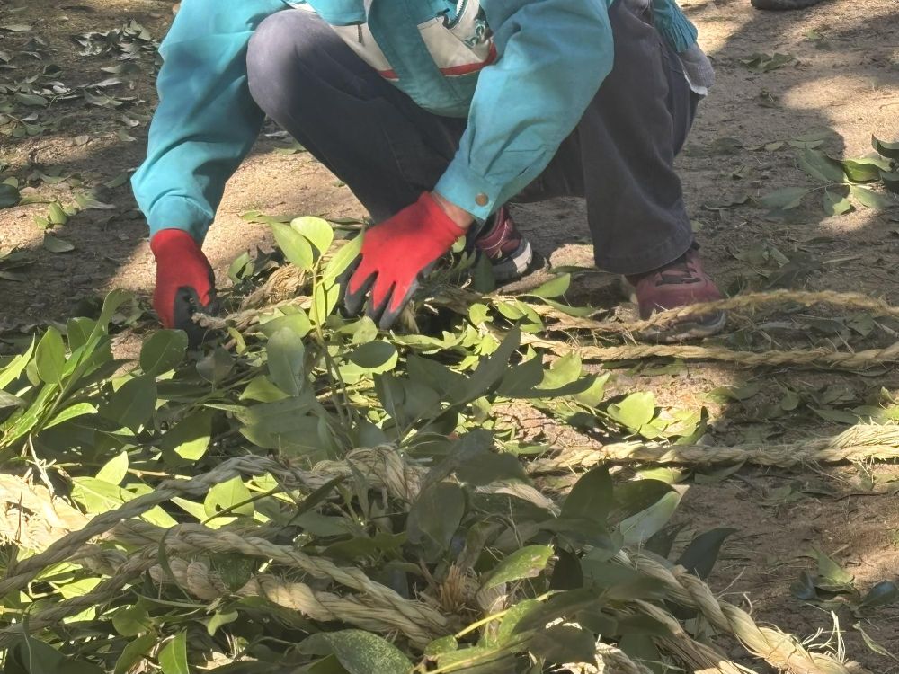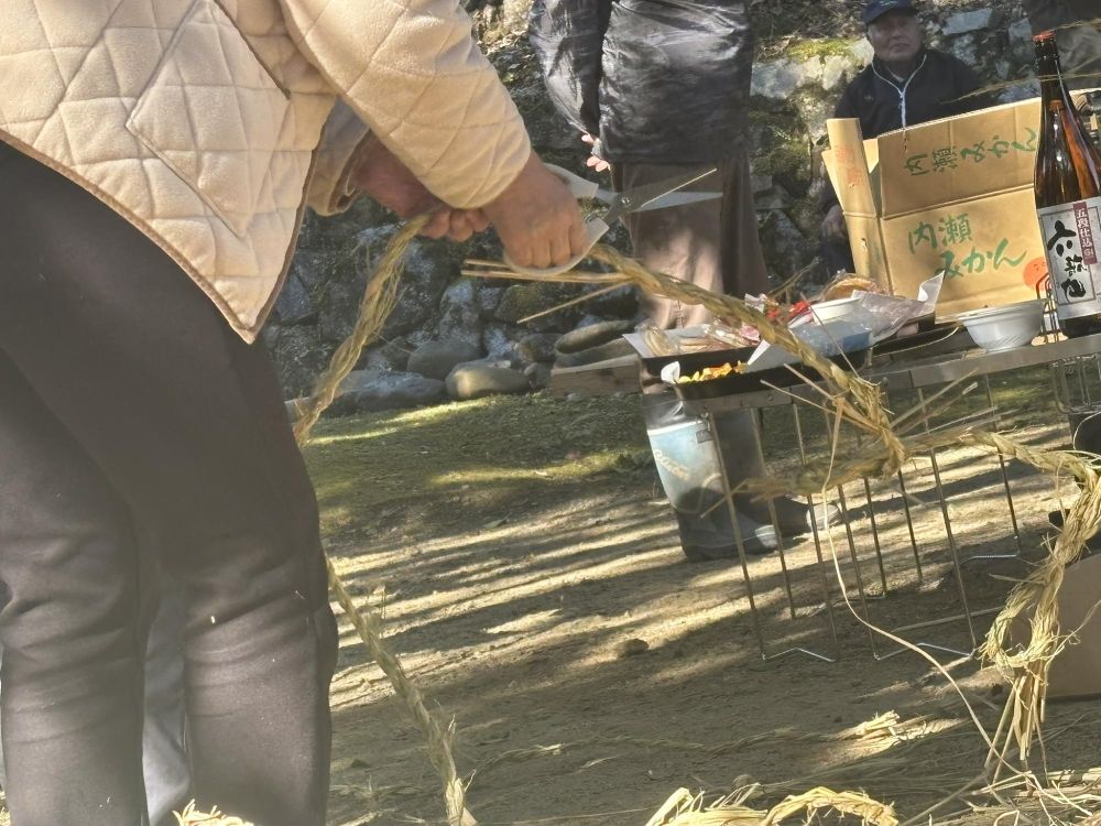 先ほど取り外した木に今年の縄を括りつけていきます。