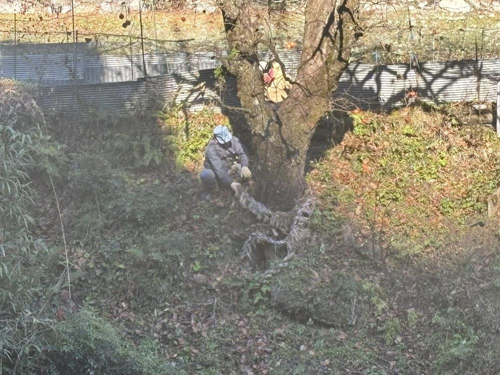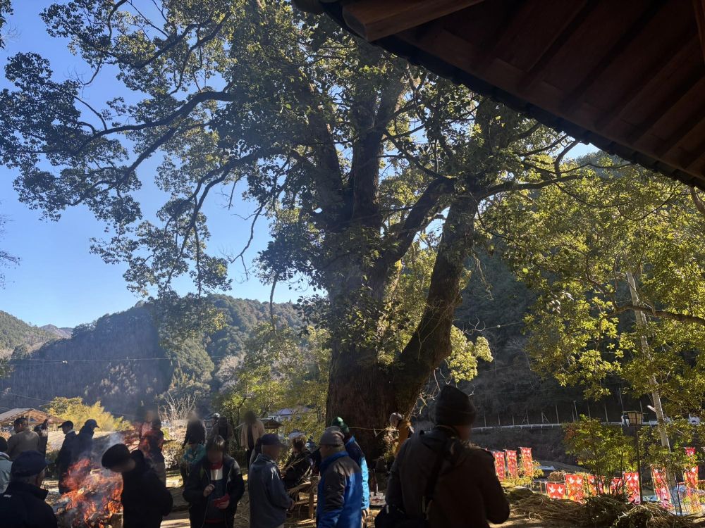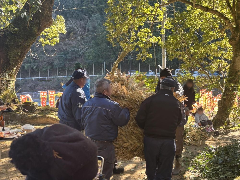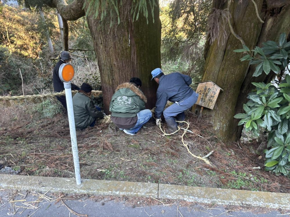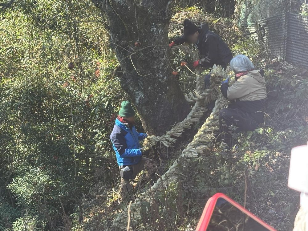 そして新しい縄をかけるため、木に括りつけられている古い縄を取り外す作業が行われていました。