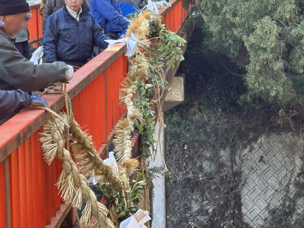「えいらく」を全て取り付けてから縄が橋の欄干から離されます。